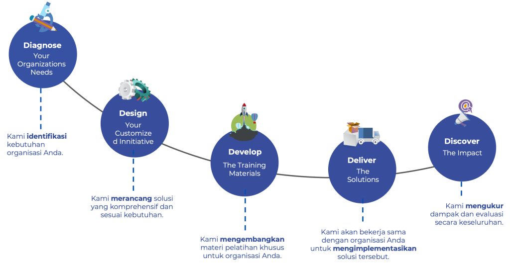 Kami memiliki langkah-langkah sistematis dan terstruktur dalam proses pengembangan modul pembelajaran untuk menciptakan program yang berdampak.